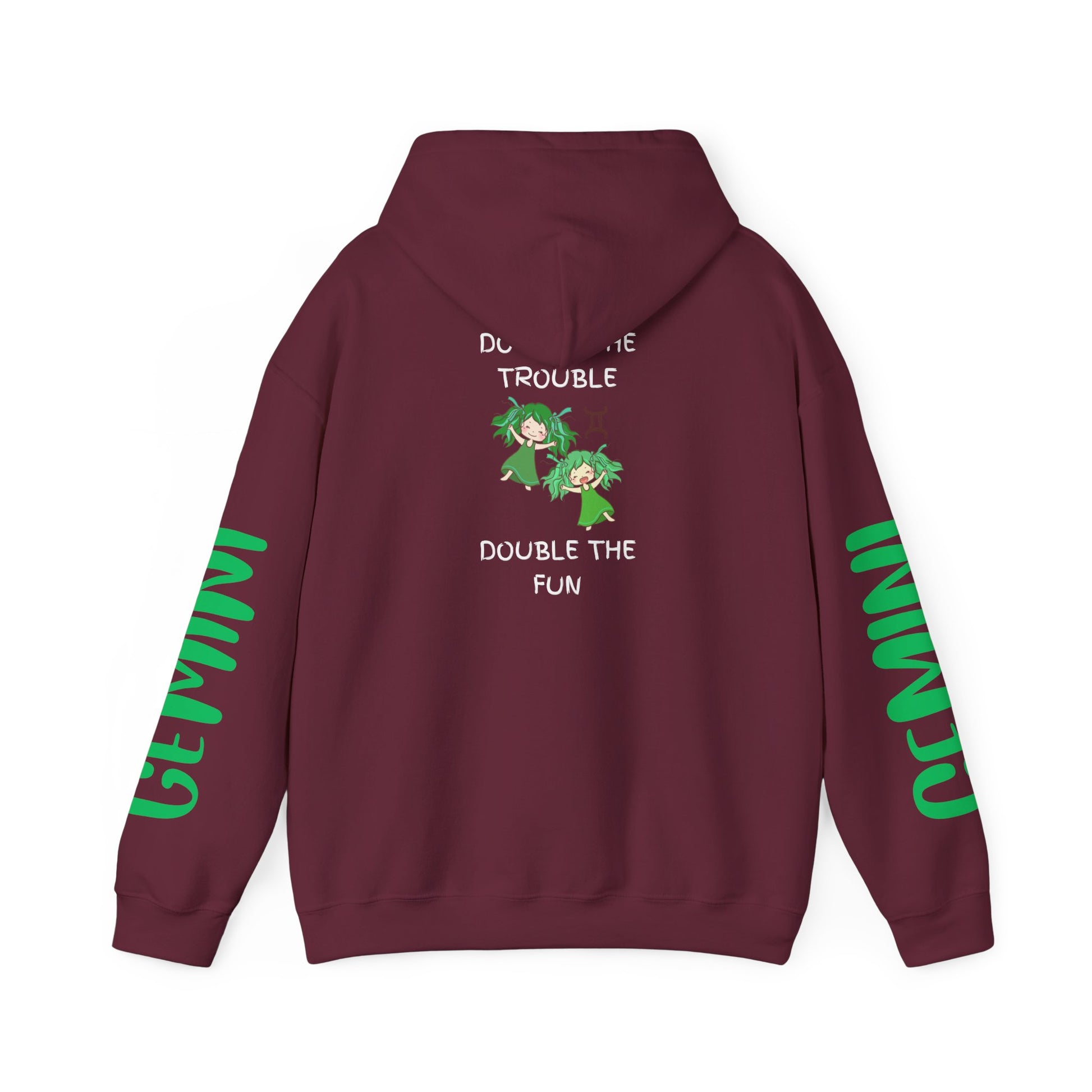 This Gemini Double Trouble Double fun hoodie is perfect for those who are proud of their dual nature. It offers a cozy feel and warmth for those looking to stay comfortable in style. Ideal for Gemini zodiac enthusiasts and those who love fun and unique designs. Perfect for casual wear or as a statement piece during Gemini season.
